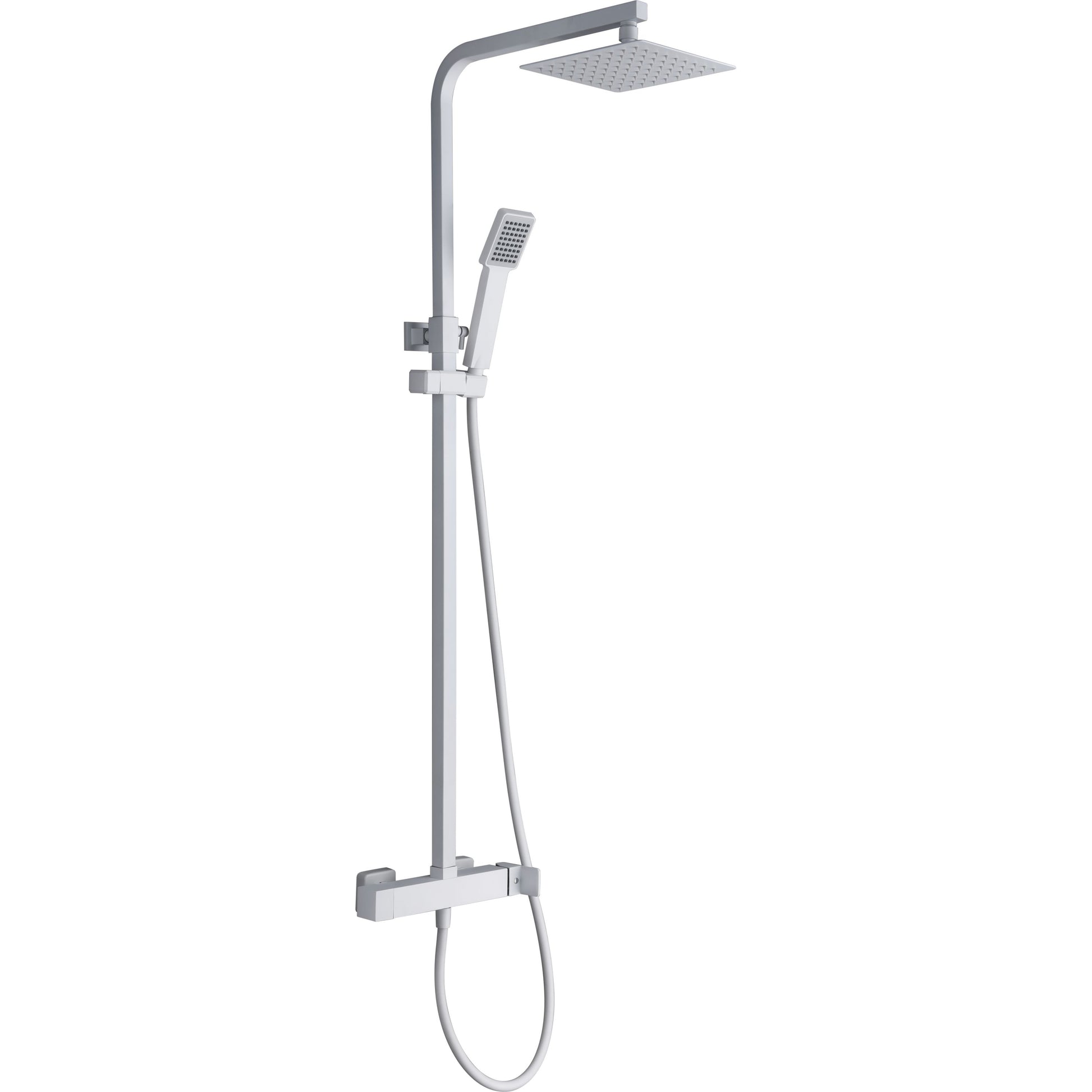 IMEX Shower column single-lever mixer matte white in S304 stainless steel and brass extendable rod extra-flat 20x20 cm anti-limescale showerhead ceramic cartridge Ø35 mm PVC flexible hose Ime