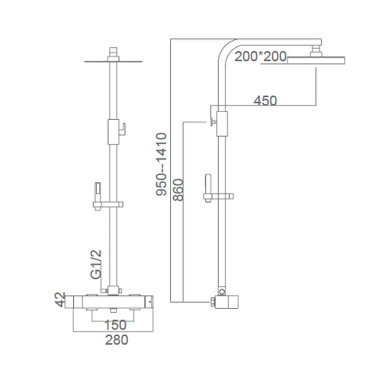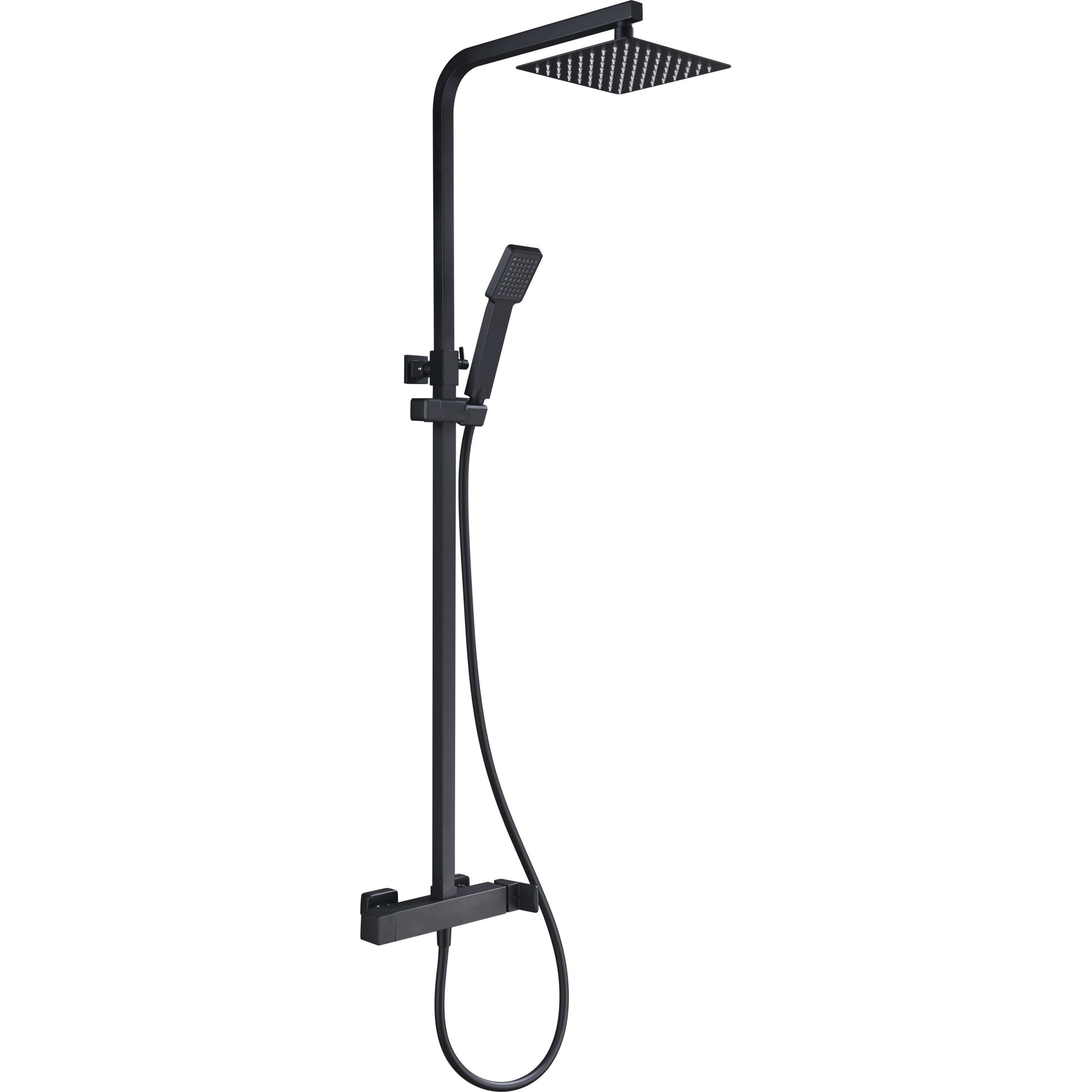 IMEX Matte black shower column mixer in brass and stainless steel with extendable rod, extra-flat 20x20 cm anti-limescale showerhead, ceramic cartridge Ø35mm, 15 m PVC flexible hose, model Imex-B