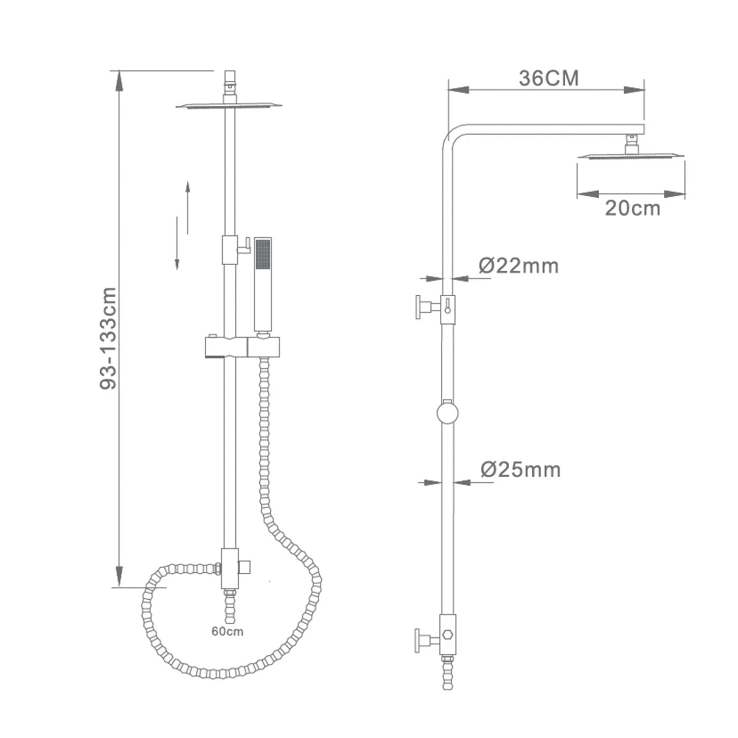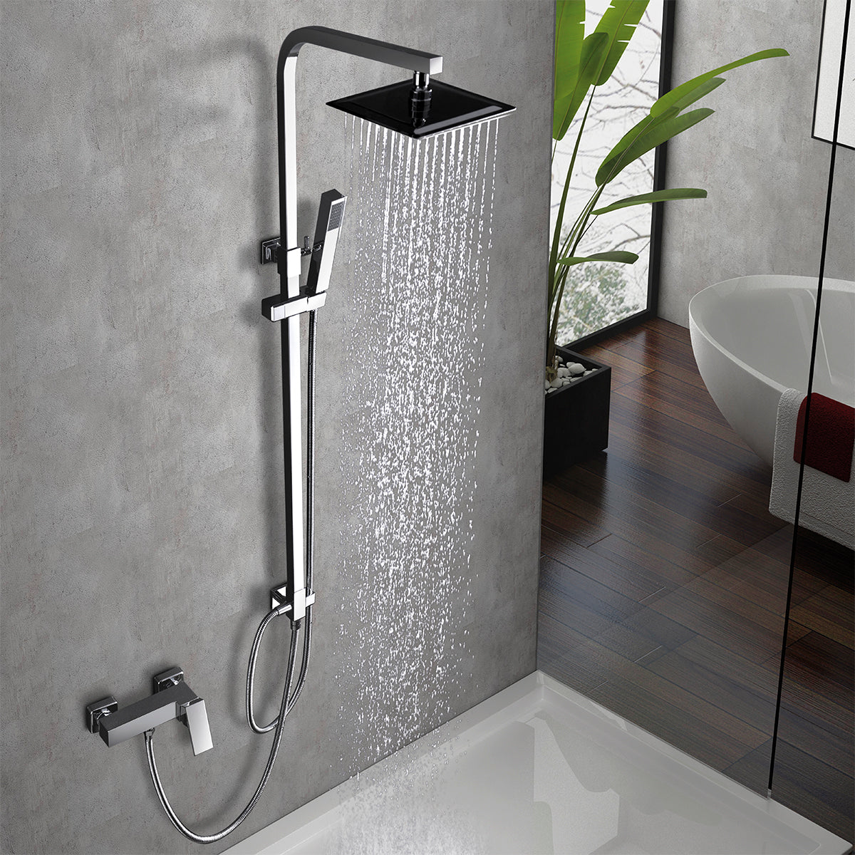 IMEX Chrome-plated shower column mixer in S304 stainless steel and brass with adjustable rod, 20x20 cm square anti-limescale showerhead, sliding support, handle, and 1.5 m hose Imex-BDK010