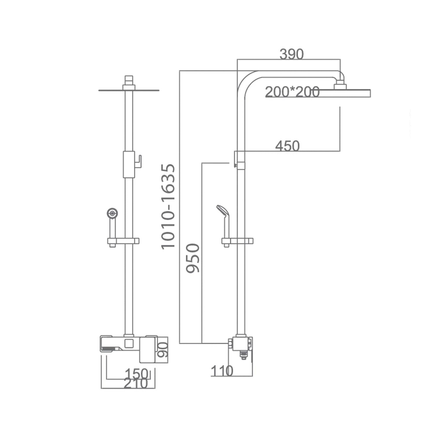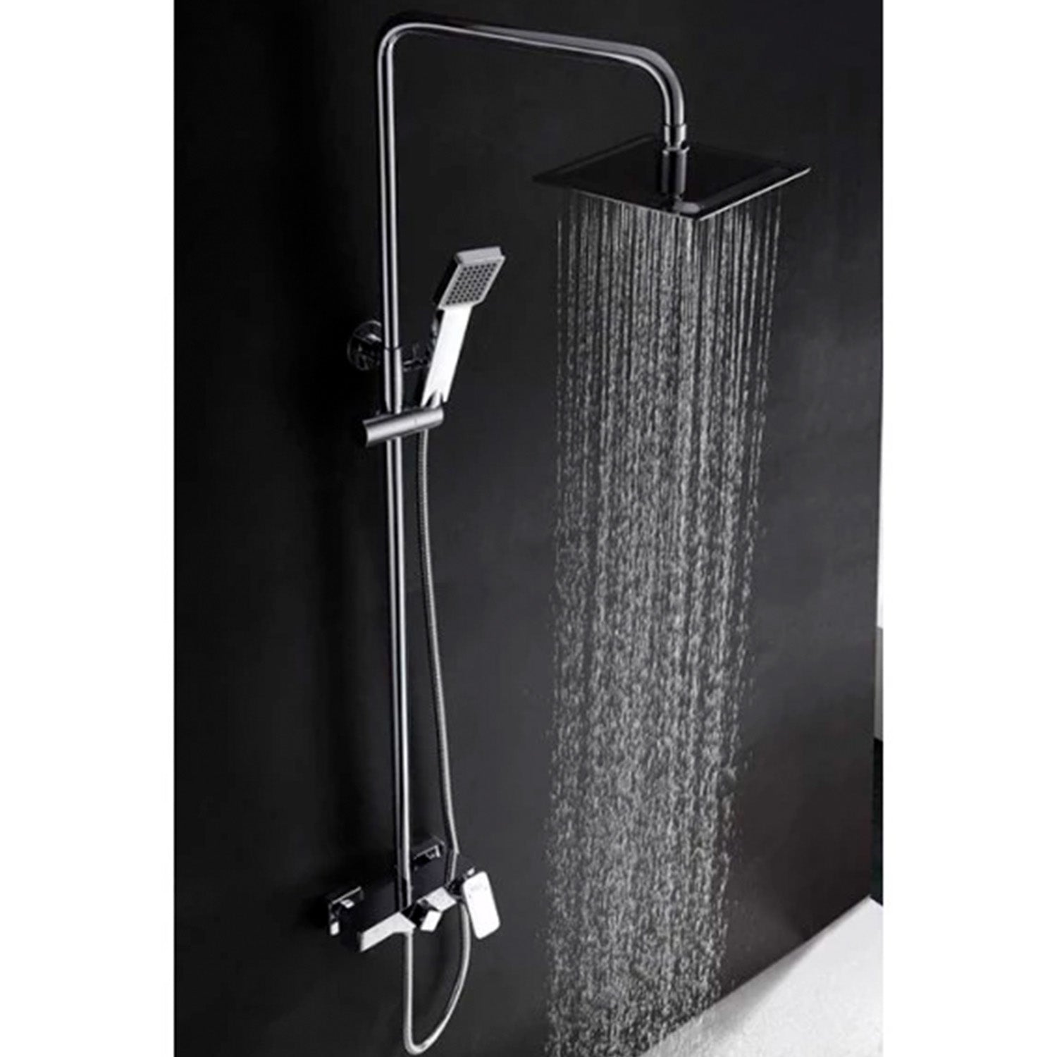 IMEX Shower column with chrome mixer in S304 stainless steel and chrome-plated brass, extendable rod, extra flat 20x20 cm anti-limescale showerhead, adjustable support, 1-position hand shower, ceramic cartridge