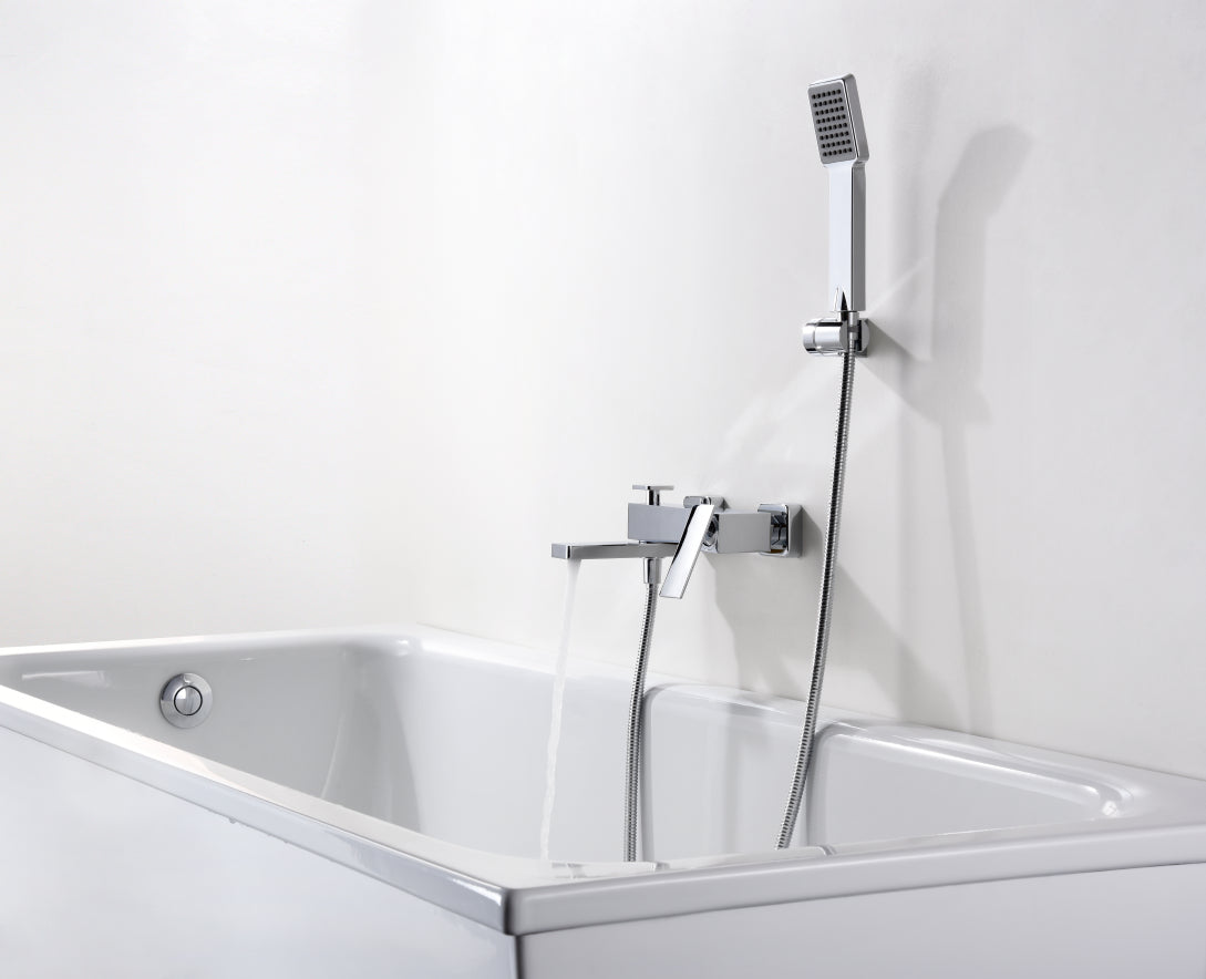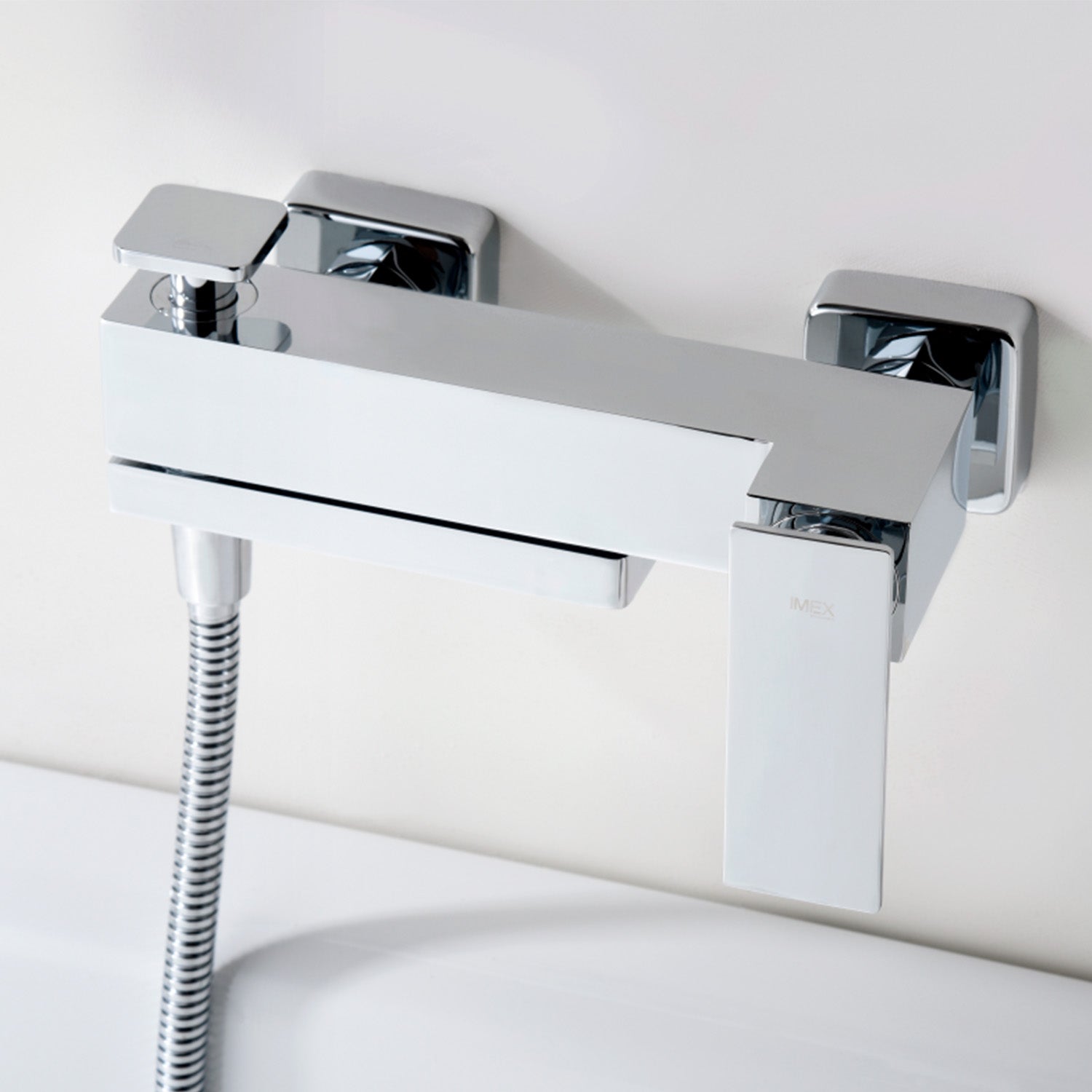 IMEX Pisa chrome bathtub-shower mixer in brass and zamak, 180 cm steel flexible hose, ABS shower holder, square handle, ceramic cartridge Ø35 mm Imex-BDP048-4