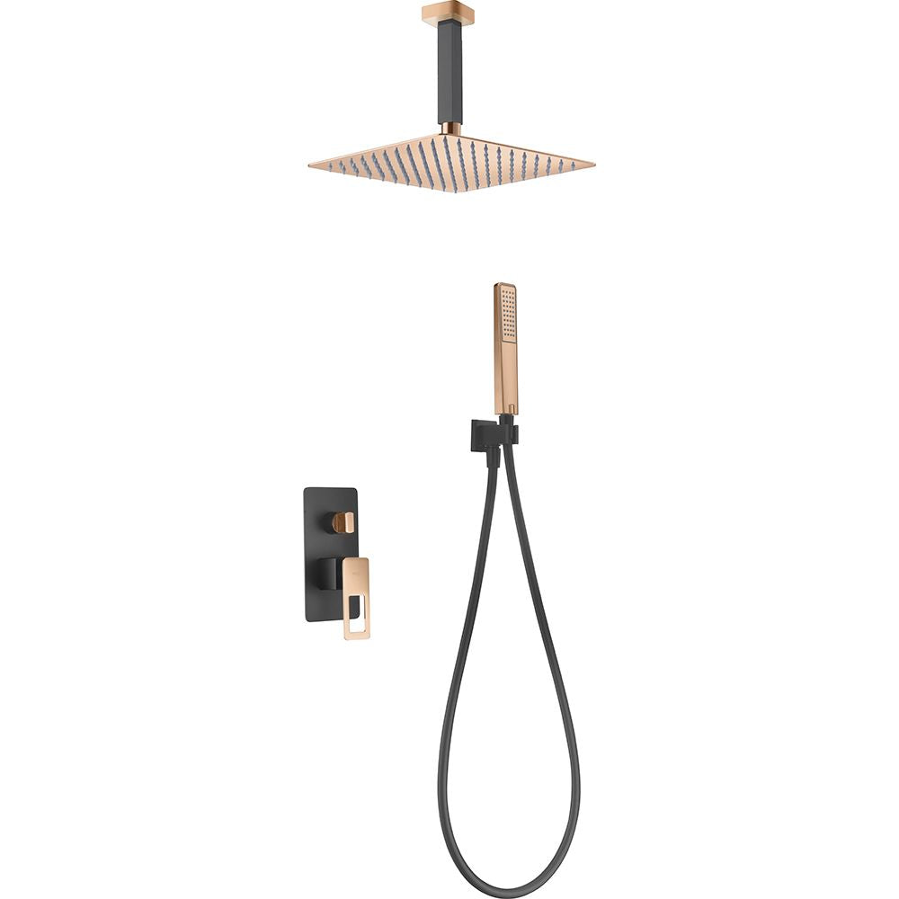 IMEX Kit incasso doccia miscelatore Estocolmo in acciaio inox S304 e ottone color oro rosa lucido e nero opaco soffione 25x25 cm extrapiatto anticalcare cartuccia monocomando 35 mm tubo PVC docce