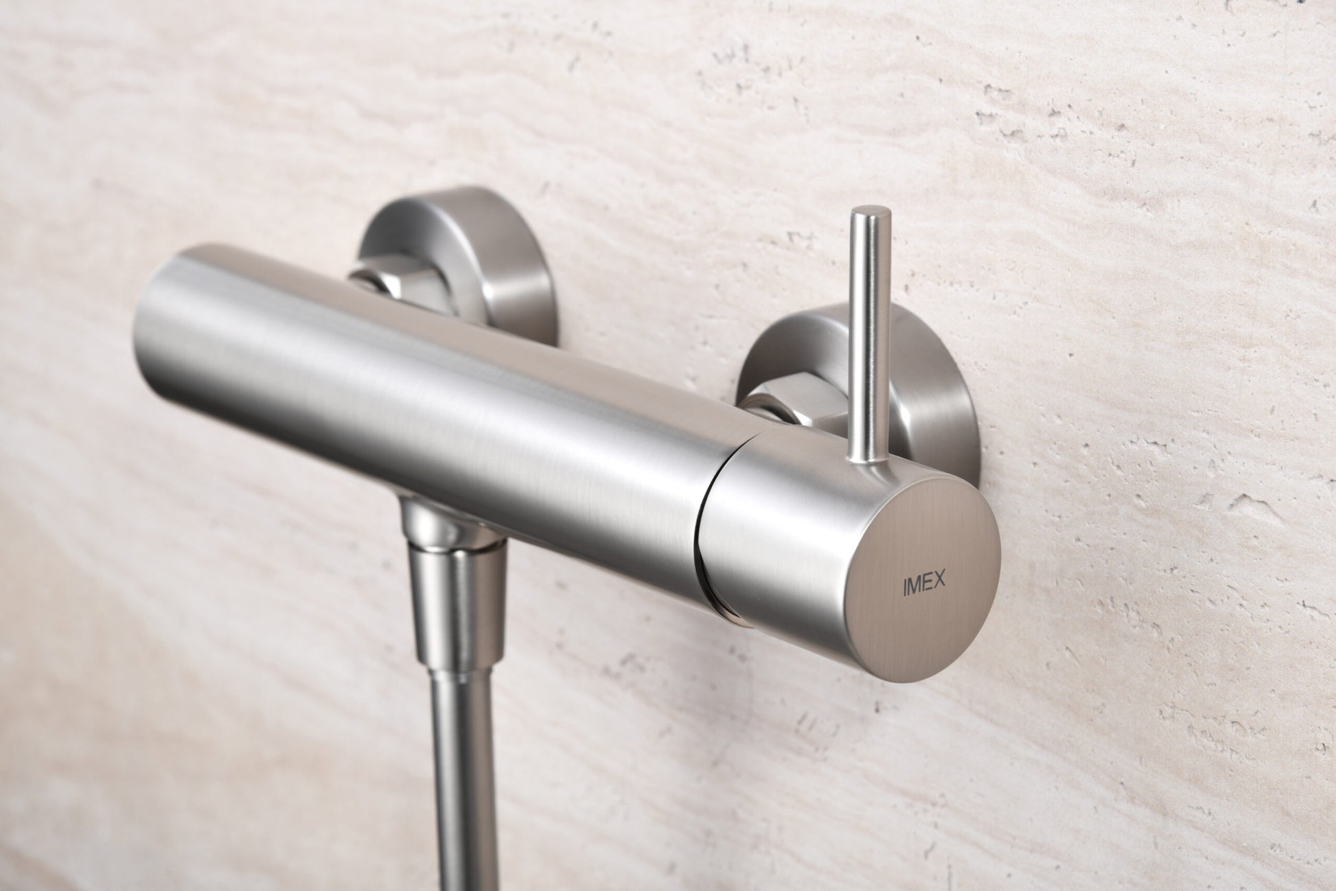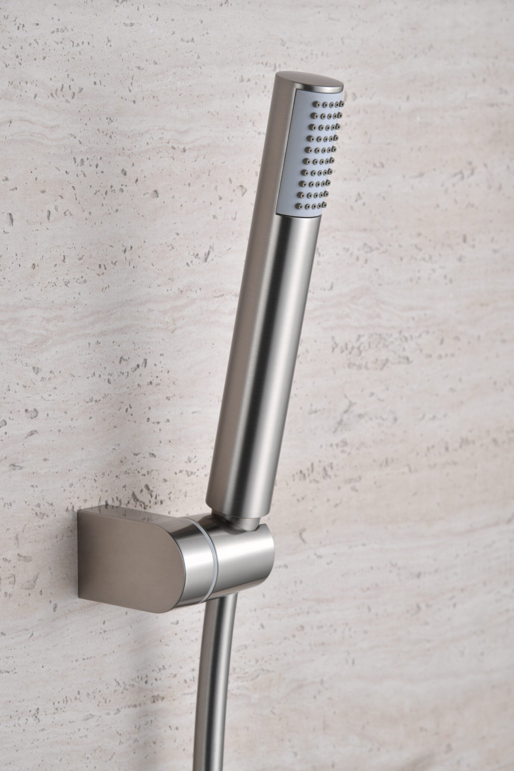 IMEX Miscelatore doccia in ottone e zama finitura nichel spazzolato tubo flessibile PVC 180 cm doccetta rotonda con supporto ABS cartuccia ceramica Ø35 mm portata 12 l-min modello Imex-BDM039-5N