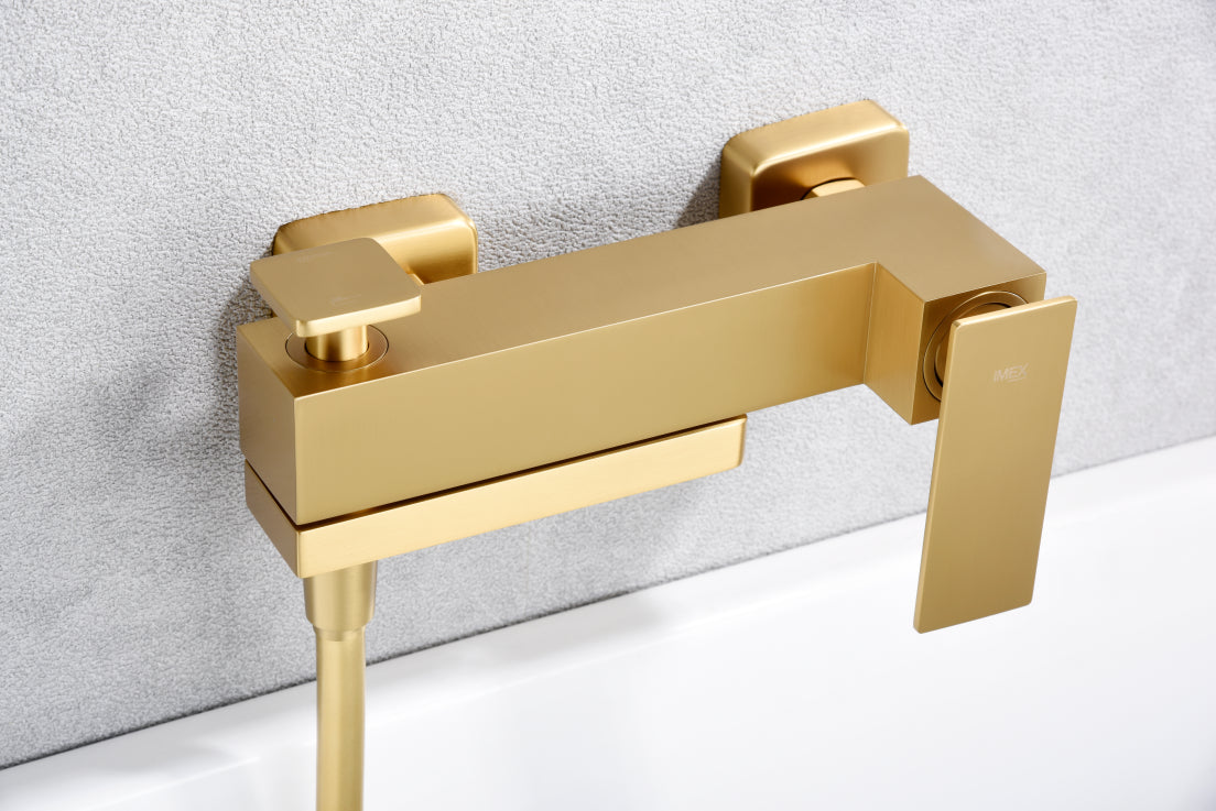IMEX Miscelatore vasca-doccia oro spazzolato in ottone e zama con supporto doccia ABS doccetta rotonda tubo flessibile PVC 180 cm cartuccia ceramica Ø35 mm modello Imex-BDP048-4OC